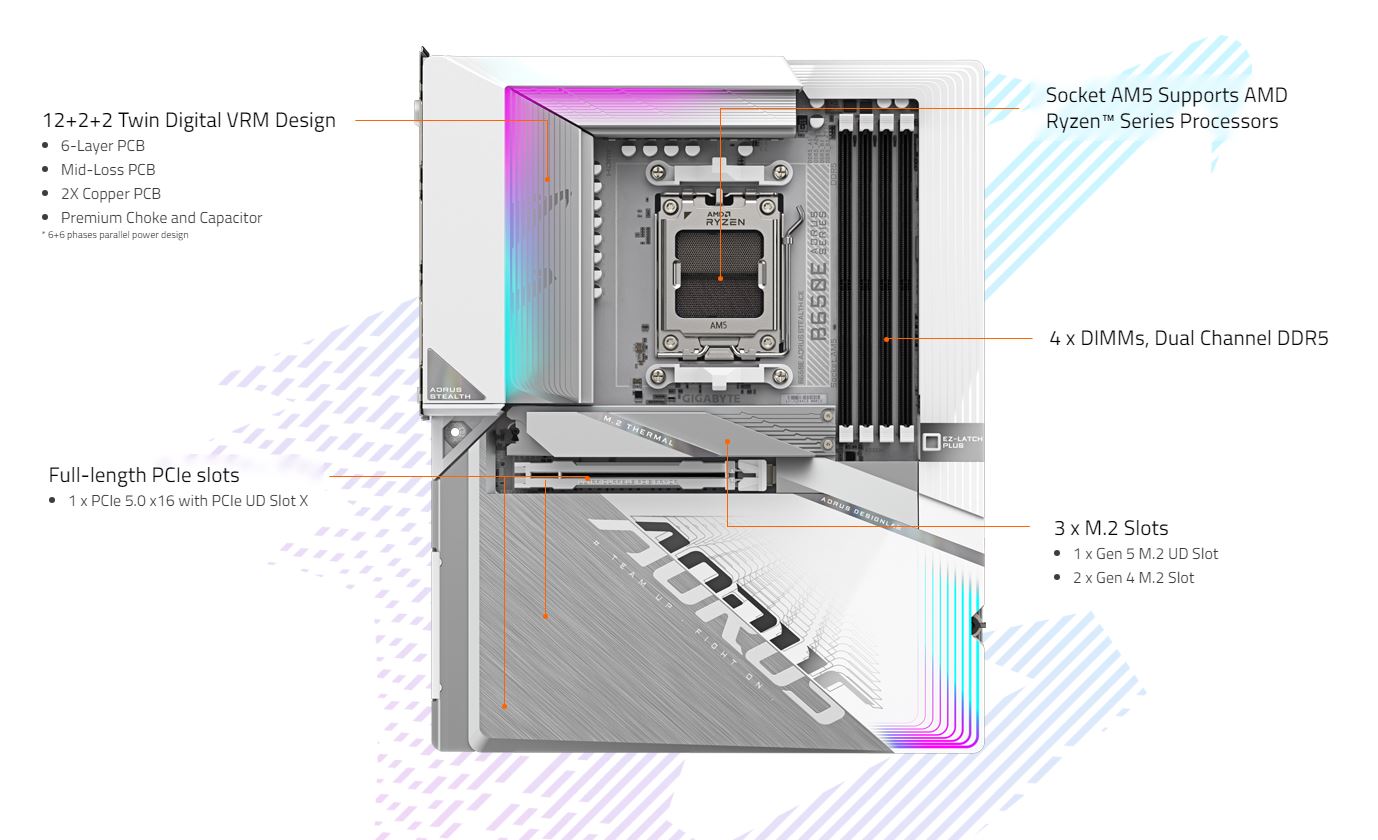 Материнська плата Gigabyte B650E A Stealth Ice Socket AM5