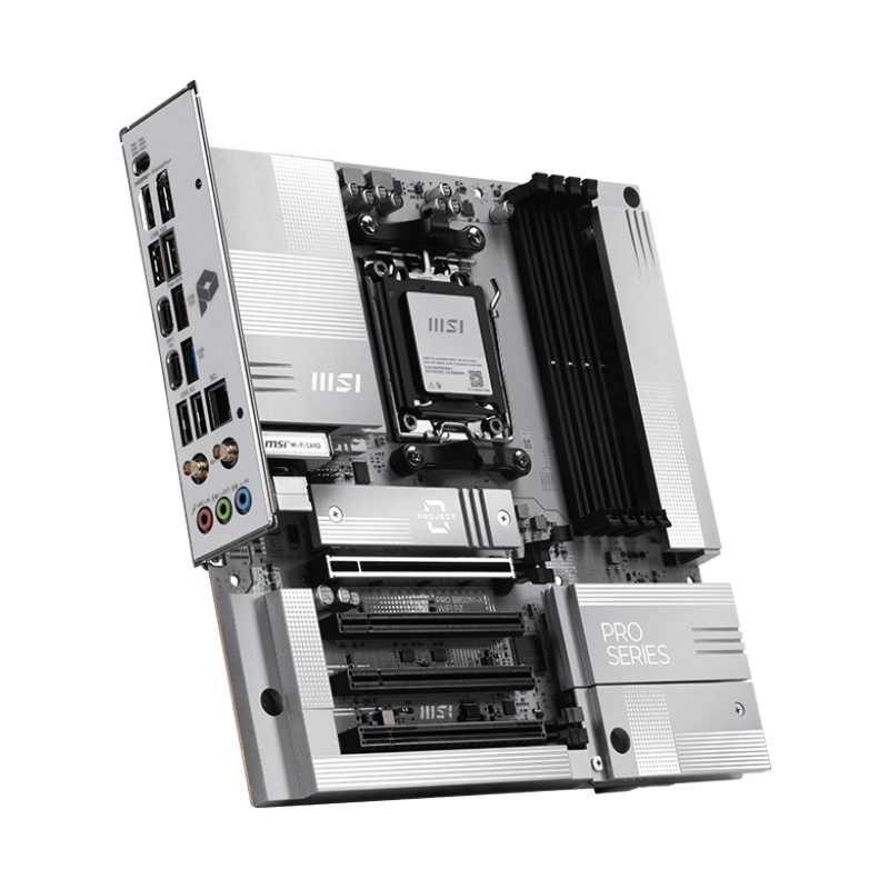 MSI Pro B850M-A WiFi PZ виконана в стильному дизайні з гармонійним сріблясто-білим забарвленням, яке ідеально підійде для складання в білому корпусі. Інноваційна конструкція Back-connect спрощує укладання кабелів та робить систему більш акуратною та естетичною. Плата оснащена фірмовими технологіями MSI, підтримкою Wi-Fi 7 із EZ Antenna, 5G LAN, слотом PCIe 5.0 M.2 та додатковим роз’ємом живлення PCIe, а також повністю готова до роботи з процесорами AMD Ryzen 9000 серії. Серія Pro – це серія для фахівців, які працюють у різних сферах. Такі пристрої відрізняються високою якістю виготовлення, чудовою продуктивністю та зручністю використання. Вибирайте Pro-серію MSI, щоб працювати продуктивніше та ефективніше. Материнські плати MSI оснащені передовими апаратними засобами та технологіями, що дозволяє їм ефективно виконувати вимогливі завдання у сфері ігор та штучного інтелекту. Крім того, ми інтегруємо ШІ в MSI Center та BIOS, що робить усі процеси ще більш простими та зручними. Материнська плата Pro B850M-A WiFi PZ використовує конструкцію Back-Connect, при якій роз’єм живлення материнської плати та процесора, конектори для вентиляторів, SATA та інші інтерфейси перенесені на зворотний бік. Такий підхід спрощує керування кабелями та надає системі більш акуратного та естетичного вигляду. Wi-Fi 7 – це новітнє бездротове рішення, яке робить великий стрибок вперед завдяки безлічі поліпшень, щоб задовольнити зростаючий попит на трафік і збільшення кількості бездротових пристроїв.