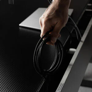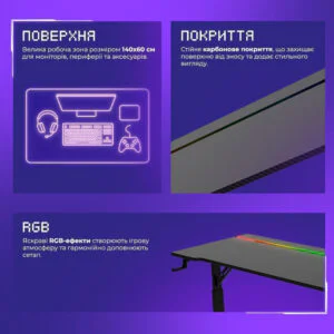 Каркас зі сталі забезпечує високу міцність і витримує навантаження до 60 кг. Стільниця завтовшки 15 мм виготовлена з PB-плити та має текстуроване карбонове покриття – зносостійке та приємне на дотик. Розмір столу – 140х60 см, а регульована висота дозволяє підлаштувати його під будь-який робочий стиль.