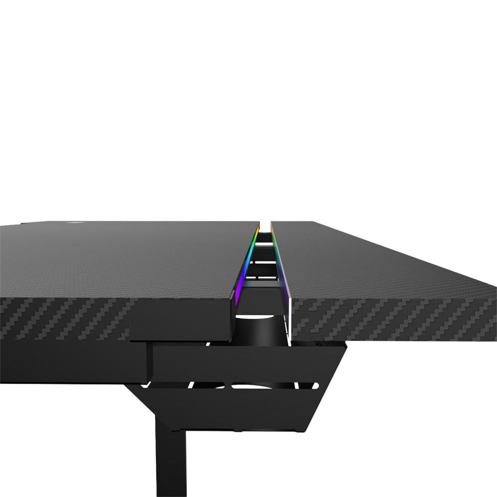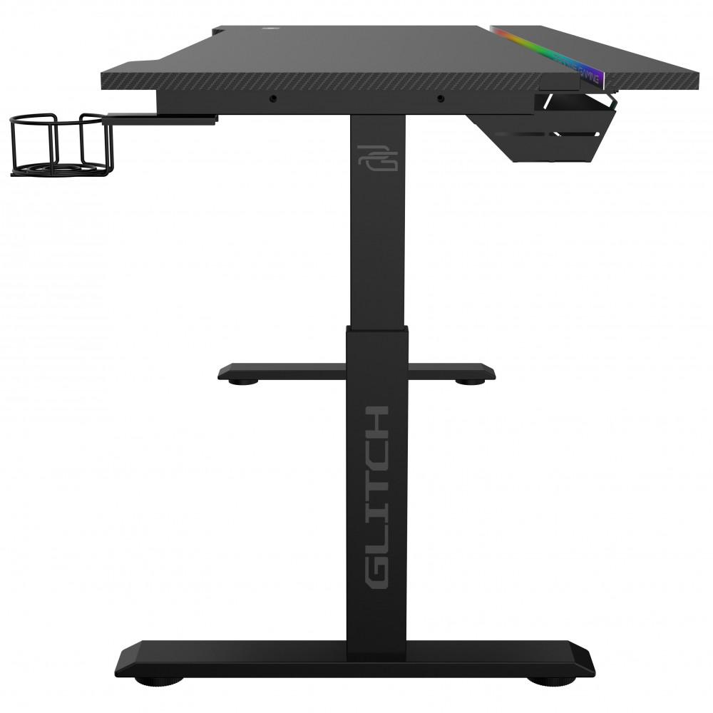 Каркас зі сталі забезпечує високу міцність і витримує навантаження до 60 кг. Стільниця завтовшки 15 мм виготовлена з PB-плити та має текстуроване карбонове покриття – зносостійке та приємне на дотик. Розмір столу – 140х60 см, а регульована висота дозволяє підлаштувати його під будь-який робочий стиль.