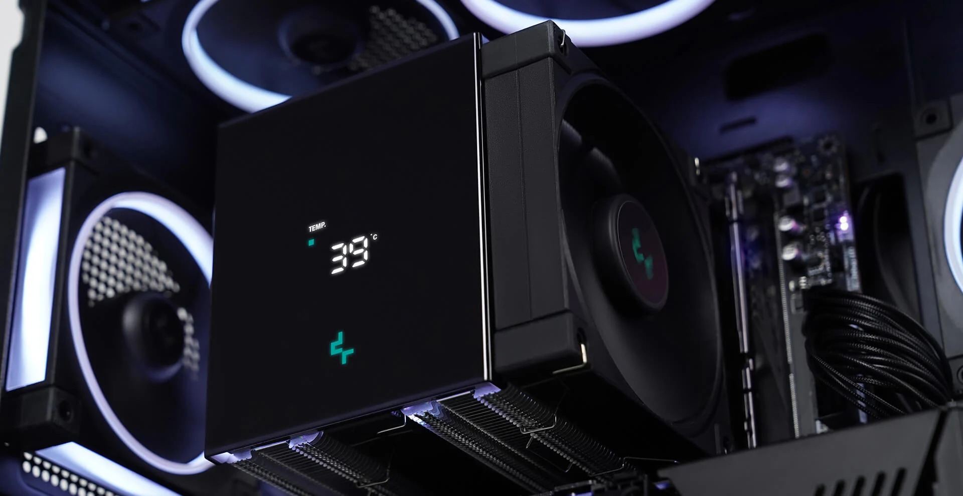 Настала ера цифрових повітряних охолоджувачів, і DeepCool з гордістю представляє AK620 Digital SE. Все, що вам подобалося в оригінальному AK620, але з елегантним низькопрофільним магнітним дисплеєм стану та світлодіодними стрічками ARGB. Кришталево чіткий цифровий екран відображає температуру та використання процесора вашої системи в режимі реального часу, а також є попередження про високу температуру. Дисплей керується за допомогою простого застосунку, для якого потрібен лише роз’єм USB 2.0. Вдосконалена версія високопродуктивного процесорного кулера AK620 з технологією CTT2.0. Ті ж високоякісні матеріали, включаючи шість удосконалених мідних теплових трубок, мідну холодну пластину, щільний двобаштовий радіатор та два безшумні вентилятори FDB, створюють потужну формулу для високопродуктивного охолодження та надзвичайно низького рівня шуму. Досягніть пікової продуктивності вашого процесора завдяки значній потужності охолодження для розгону на високих частотах. AK620 Digital SE забезпечує максимальну потужність розсіювання тепла та покращений повітряний потік для зниження температури під час вимогливих системних програм. Два потужні ШІМ-вентилятори з покращеними гідродинамічними підшипниками забезпечують низький рівень шуму без втрати потужності охолодження для ідеального балансу. Міцне кріплення забезпечує простий процес встановлення, що гарантує належний контакт та рівномірний тиск на основних платформах Intel та AMD.