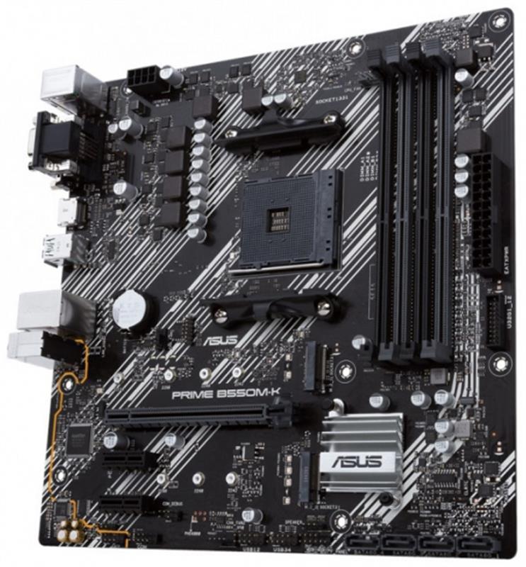 Серія ASUS Prime спеціально розроблена для розкриття всього потенціалу платформи AMD Ryzen третього покоління. Маючи надійну конструкцію, комплексні рішення для охолодження та інтелектуальні параметри налаштування, материнські плати серії Prime B550 щодня пропонують користувачам та розробникам персональних комп”ютерів цілий ряд параметрів налаштувань продуктивності за допомогою інтуїтивного програмного забезпечення та функцій мікропрограмного забезпечення. Asus Prime B550M-K – материнська плата, яка побудована на базі чіпсету AMD B550. Оснащена сокетом AM4, тому призначена для використання з процесорами AMD Ryzen 3-го покоління. Виготовлена плата у форм-факторі micro ATX. Оснащена двома M.2, PCIe 4.0, Gigabit Ethernet, портами HDMI, D-Sub, DVI, USB 3.2 Gen 2 Type-A, SATA 6 Гбит/с, підтримується Aura Sync. Утиліта Fan Xpert 2+ забезпечує гнучке управління вентиляторами охолодження, а всебічний захист забезпечують апаратні засоби 5X Protection III.